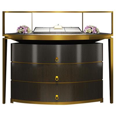 高端奢华珠宝地柜_拉丝红铜不锈钢玻璃展柜